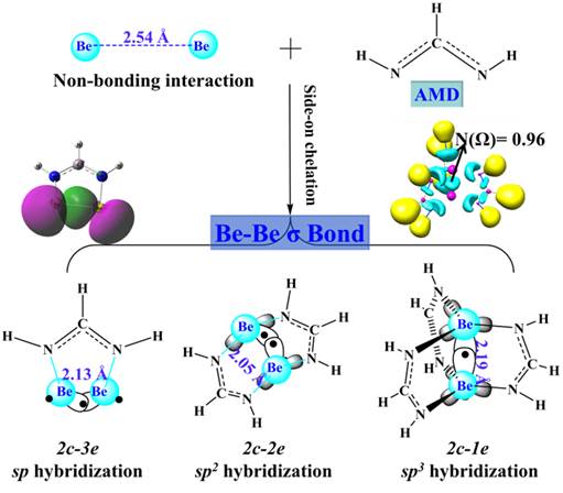 我院张珉副教授与苏忠民教授团队以脒基自由基为配体在中性条件下实现构筑Be-Be奇数电子键的新策略。脒基通过侧基配位的方式与Be2螯合,逐渐地夺走Be2片段上的电子从而实现对Be-Be间键电子数的调节。同时Be原子的杂化形式...
