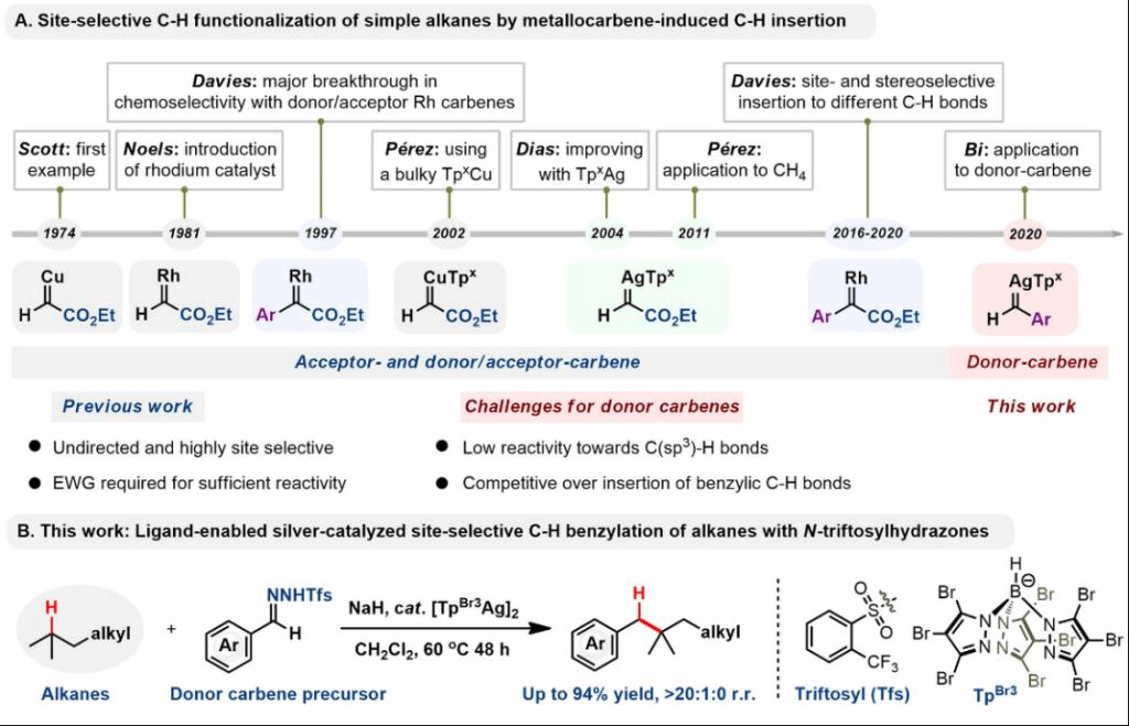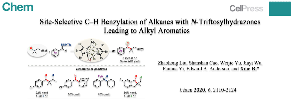 近日,在学校重点学科建设规划支持下,我院毕锡和教授研究团队在化学领域国际重要期刊《Chem》(IF = 19.735)发表题为“Site-selective C–H benzylation of alkanes with N-triftosylhydrazones leading to alkyl aro...