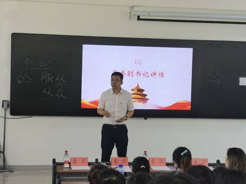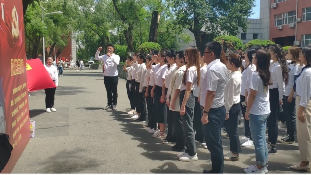 活动开始,由团委书记李威宣读参加宣誓的新党员名单。接下来,由老党员代表和新党员代表发言,交流了对党组织的认识和入党的信念。接下来,杨雨龙老师对新发展党员真挚寄语,强调各位同志要不忘初心,不断加强自身党性修养,听党话,跟党走,努力成为社会主义合格的建设者和接班人。最后,全体老师和新发展党员移步至室外,在庄严的党旗下列队宣誓。宣誓结束后,新发展党员进行了精神谱系学习教育活动,在学习一系列伟大精神的同时明确了自身的奋斗方向。