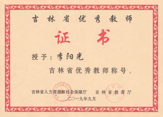 近日,吉林省人力资源和社会保障厅、吉林省教育厅印发《关于表彰吉林省教育系统先进集体、优秀教师和先进工作者的决定》,我院李阳光教授当选吉林省优秀教师。