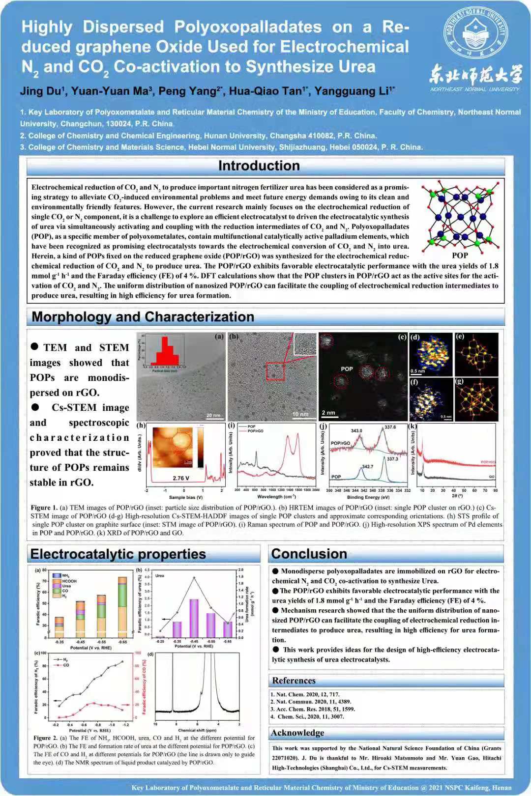 yl6776永利集团2019级博士研究生都京主题为“高度分散的还原氧化石墨烯负载的钯多酸用于电催化N2和CO2共活化产尿素”的墙报和2020级博士研究生赵聪聪主题为“磷钼酸负载Pt高效电催化硝基苯氢化制苯胺的理论研究”被评为会议优秀墙报。