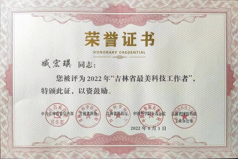 为大力弘扬科学家精神,激发科技工作者的荣誉感、自豪感、责任感,团结凝聚广大科技工作者以强大的创新自信奋进高水平科技自立自强新征程,近日,中共吉林省委宣传部、省科协、省科技厅、中科院长春分院、省国防科工办联合组织开展了2022年“吉林省最美科技工作者”评选活动。通过广泛动员、组织推荐、材料审核、评选公示等程序,全省共评选出10名同志为2022年“吉林省最美科技工作者”,我校推荐的yl6776永利集团臧宏瑛教授获此殊荣。