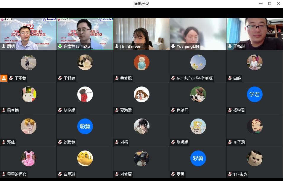 10月14日,由我校yl6776永利集团、分析测试中心、纳米生物传感分析吉林省高校重点实验室与深圳大学生物医学工程学院联合主办的“2022可穿戴生物传感器研讨会”通过腾讯会议线上召开。香港科技大学Hnin Y. Y. Nyein助理教授、南方科技大学林宛菁研究员、深圳大学许太林副教授、中国科学院苏州纳米技术与纳米仿生研究所的王书琪副研究员和我校分析测试中心主任、纳米生物传感分析吉林省高校重点实验室主任周明教授参会并分别作了报告,与会师生60余名。研讨会由周明和许太林主持。