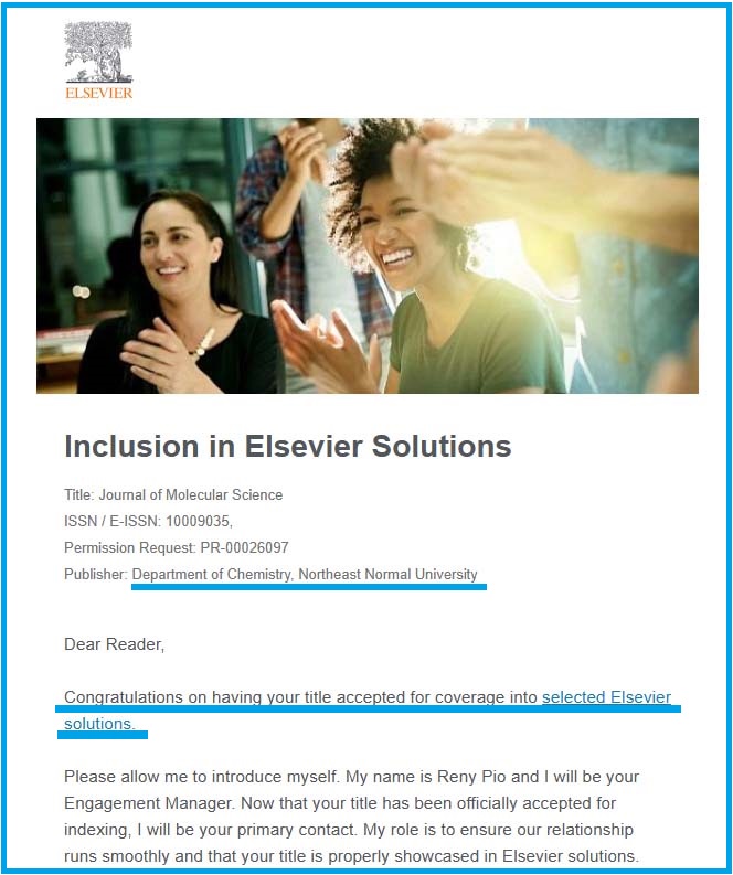 近日,经过Scopus数据库内容遴选与咨询委员会(Scopus Content Selection & Advisory Board,CSAB)的严格评审,我院编辑出版的《分子科学学报》被Scopus数据库正式收录。