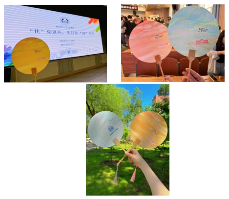 活动过程中,同学们学习了漆扇的历史,感受非遗文化独特魅力的同时也学习到了其中与化学有关的制作原理。在工作人员的指引下,同学们按照自己的喜好调配颜色,根据事先讲解的步骤开始漆扇的制作,充分发挥了身为化学人的动手能力,创造出独一无二的漆扇。在专注中,大家忘却烦恼,沉浸于创作的喜悦,每一把扇子未知的美丽都牵动着在场同学的心。