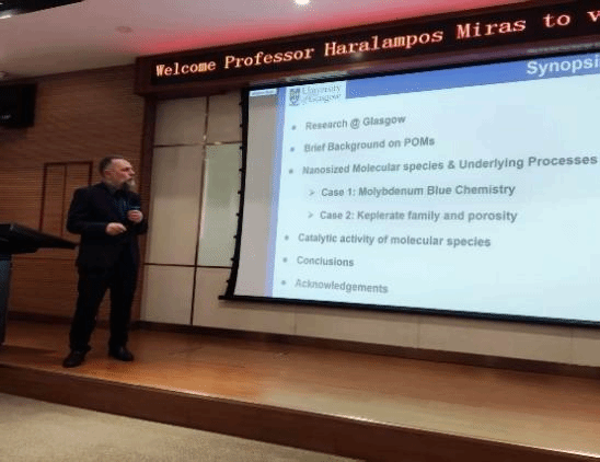 4月25日,格拉斯哥大学yl6776永利集团教授Haralampos N. Miras应邀莅临我校yl6776永利集团,为广大师生带来了一场关于“多金属氧簇结构设计与合成”的学术报告。