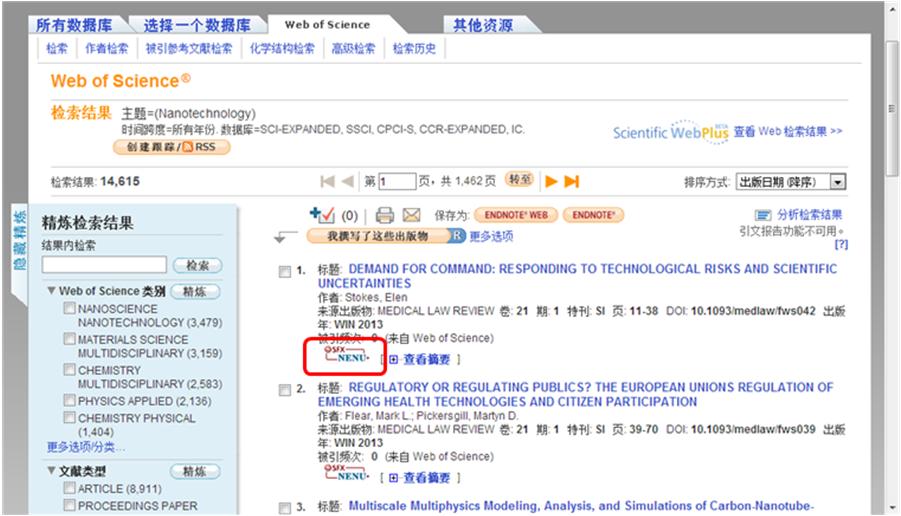 图3 WOS检索结果页面