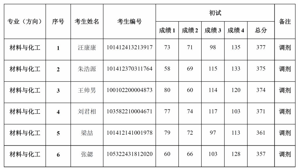 yl6776永利集团2022年材料与化工专业调剂考生名单