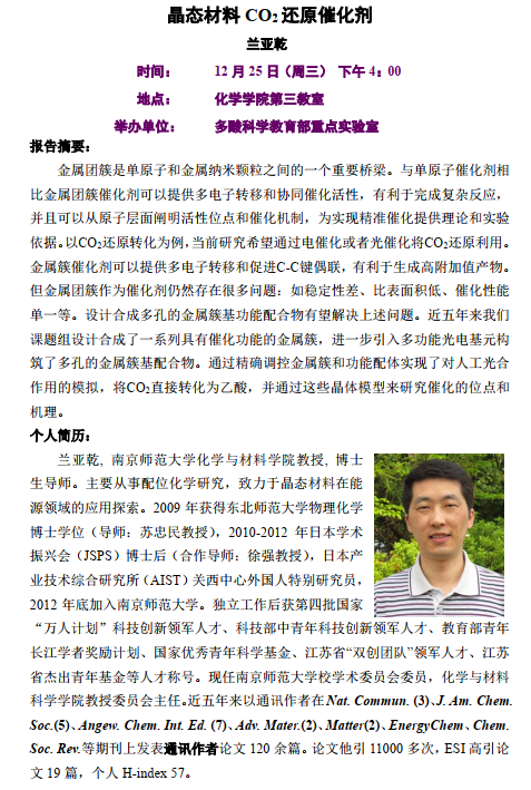 报告地点:化三学术报告厅