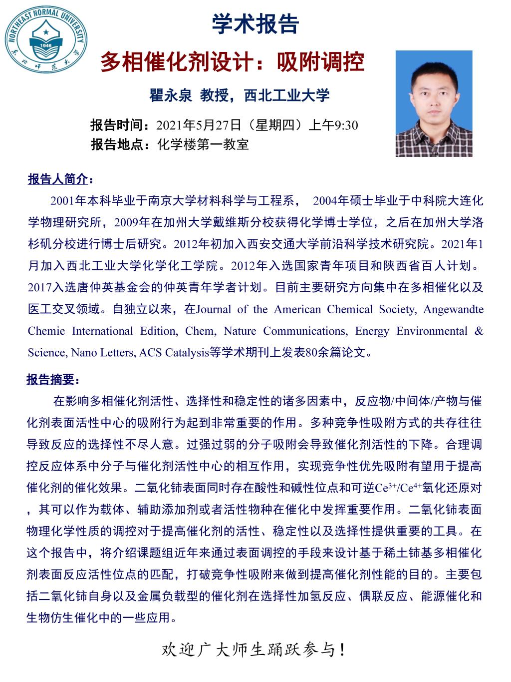 报告地点:化一教室