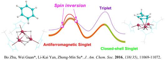 近日,yl6776永利集团关威副教授和苏忠民教授团队通过理论化学方法,探讨了多钛氢化物活化苯分子碳碳键的反应机制,并取得了突破性进展。相关研究成果以“Two-State Reactivity Mechanism of Benzene C−C Activation by Trinuclear Titanium Hydride”为题,发表在国际著名期刊《美国化学会志》上(J. Am. Chem. Soc. 2016, 138(35), 11069-11072)。该文第一作者为yl6776永利集团物理化学专业博士生朱博。
