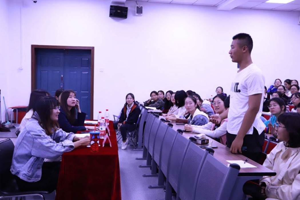 接下来是自由问答环节,这一环节给新生们向学姐们继续请教的平台,大家踊跃地举手提问,学姐们耐心地为新生答疑解惑。