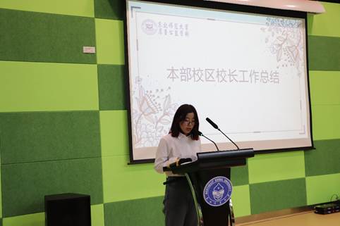 接下来是厚普公益学校艺术分校五期校长上台做工作总结。大会第三项是教师代表发言。由高中化学组教师作为教师代表讲诉她在厚普的经历以及收获。