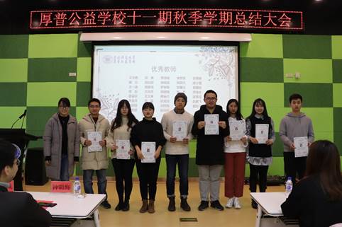 接下来是厚普十一期校长为优秀教研组颁奖,然后是厚普艺术分校校长为优秀班主任颁奖。最后参会人员一同观看了厚普公益学校十一期秋季学期的电子相册。至此永利官网厚普公益学校十一期期末总结大会圆满结束,这也宣告着厚普本学期工作的结束。
