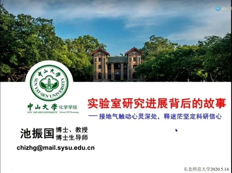 5月14日,由yl6776永利集团党委主办,2018级本科生承办的《师说》讲坛第13讲——《实验室研究进展背后的故事》“云”开讲,本次主讲嘉宾为中山大学yl6776永利集团教授、博士生导师、中山大学“卓越人才”支持计划入选者池振国教授。学院本、硕、博五百余名师生线上同步观看,取得了良好效果。